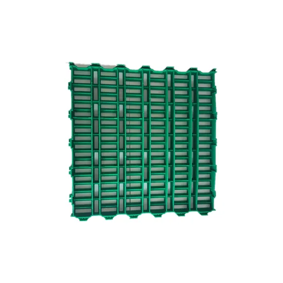 Light weight. More convenient to transport and install. Corrosion resistant. More durable than wooden, bamboo and cast iron (fragile) materials in the environment with higher humidity. Small temperature difference. The temperature difference between day and night of plastic floors is smaller than that of cast iron, so it can avoid cold or scald due to large temperature difference and is beneficial to the health of livestock. Easy to wash with good fecal leakage effect. The fecal leakage hole is long, not jammed and easy to clean. The arched design with two rows of double ribs and lateral fecal leakage holes making the fecal leakage effect much better. It is made without cracks so and can be flushed with the high-pressure water jet of washing machine easily. Easy to install or remove. The slots on both sides of the floors make the installation or removal more convenient for the seamlessly connection in a zigzag pattern. Anti-falling. The surface of the floors is frosted to increase the contact area and the friction, thereby preventing animals from falling and hurting. Strong bearing capacity. The experiment test shows the bearing capacity is no less than 180kg/m2.