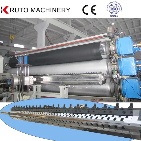 Qingdao Kruto Plastic Machinery.,Ltd has 16 years excellent experience in Plastic Sheet extrusion lines and pipes extruding machinery. Such as extra width 8500mm waterproof Geomembrane sheet / ABS / PMMA / PC / HIPS / PC hollow sheet /PP hollow sheet / 3D drainage net and all of kinds pipes.