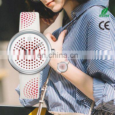 Video DescriptionProduct DescriptionModel NumberK0128LBrandSHENGKE(SK)StlyeFashion Women's WatchMovement Janpan Quartz(PC21)Case MaterialAlloyDiameter/Thickness34mm/9.5mmBand MaterialStainless Steel Mesh BandBand Width15mmWaterproof3ATMBattery Life18 MonthsCompany ProfileBuyer FeedbackFAQ1. What's your MOQ? Can I mix styles and colors?A: Take our brand logo watches for wholesale is no MOQ limited , but if customized your logo (OEM ), the MOQ is :Alloy case watch 300pcs/style,can mix 2~3 colors ,stainless steel case watch 500pcs/per style .can mix 3~5 colors 2. Can we print our own logo?A: Yes,we can print your logo or design on the band, dial, buckle, back, case and other place, usually the color of the logo isone color.3.What about the warranty?A: 12 months movement warranty, and we are very confident with our products, and we will pack it very well, so usually you will receive your goods in good condition. But to avoid any subsequent trouble regarding quality issue, we suggest you check the watches once you receive them, and let us know if there is any damaged ones, so that we can deal with it accordingly.4.Do you offer Drop shipping (Blind shipping )?Yes , we offer Drop shipping/Blind shipping,we haven enough experience in drop shipping ,every day we have many watches to send out many countries for drop shipping.5. Do you do custom watch boxes?Yes, we do custom watch boxes. We can follow your requirement to make the boxes ,or you can select our boxes with your logo.6. What movement do you usually use in your watches?We usually use Japanese movement ,Swiss movement, and Chinese movement, for example Seiko,Citizen,Miyota,Ronda, Kingstar we use most.
