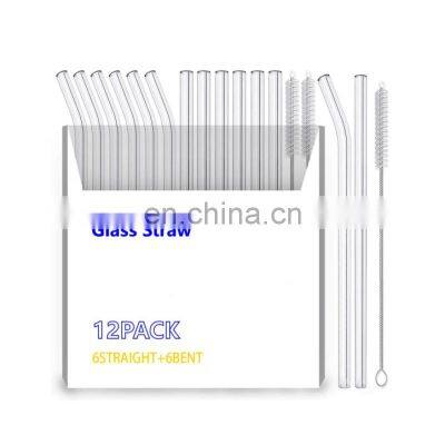 Hot Sale Manufacturer Custom Made 12 Pcs Bent And Straight Glass Drinking Straw 12-Pack Reusable Glass Straw