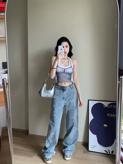 | Production itme | 2024 trend lady printed blue five-pocket jeans produce by Guangzhou factory |