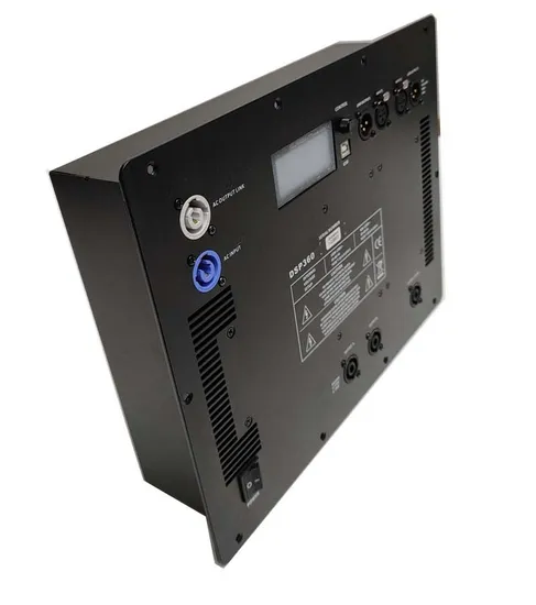 its flexible output power is available for different cabinet: 2 ways active speakers,3 ways line arrays, subwoofer, column box etc.