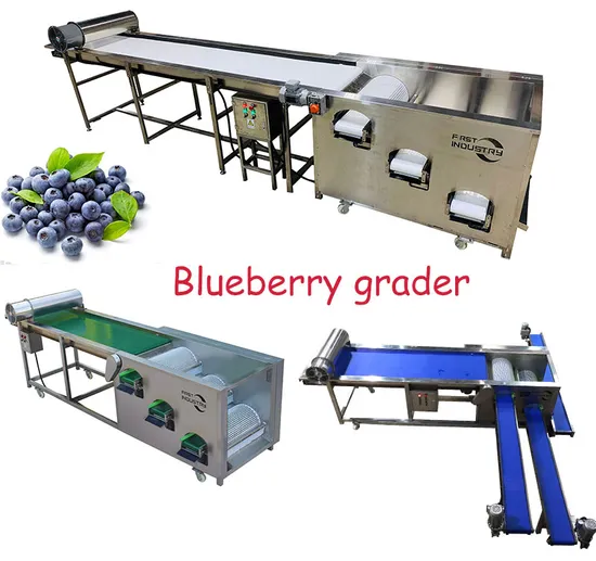 Descripción del Producto El clasificador de arándanos está compuesto por una mesa de recolección de frutas con cinta transportadora, un ventilador y una sección de clasificación. La fruta secundaria y las impurezas se recogen en la cinta transportadora y luego ingresan a la sección de clasificación. Bajo la función de los rodillos cribadores, los arándanos se clasifican por tamaño. Esta máquina de procesamiento no causará el fenómeno de caída de polvo de arándanos ni daño a la fruta durante el proceso de selección.