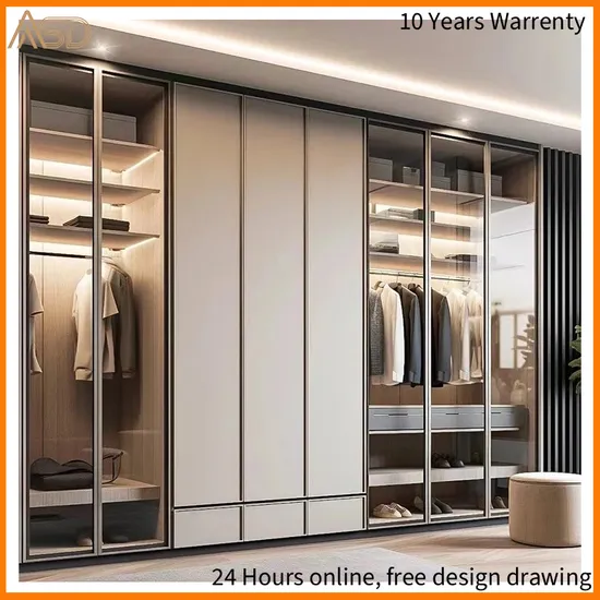 White Color Plywood Carcass Glass Swing out Door Wood Wardrobe Product Description