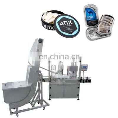 Full automatic snus powder packing machine for snus packing can jar chewing tobacco packing machineProducts DescriptionApplication>What can this machine pack?Professionally provide bag packaging solutions for alternatives such as snus, nicotine, coffee chew, etc., from bagging, filling, sealing, packaging and labeling.Machine InformationFully automatic snus chewing tobacco and nicotine pouches packaging line. It is a set of highly customized equipment, consisting of can unscrambling sending table, snus powder / nicotine pouches pouch packing machine, pouch filling machine, film sealing machine, bottle capping machine, checkweigher and labeling machine.Pouch Filling Range1-10gPacking Speed20-50bags/minBag Width15-80mmBag Length30-145mmStandard Size17*35mmCans Filling Speed40-50cans/minMain Features1.Efficient: Bag-making, filling, sealing, cutting, heating, date / lot number achieved in one time; 2.Intelligent: Packing speed and bag length can be set through the screen without part changes; 3.Profession: Independent temperature controller with heat balance enables different packing materials; Dual inverters controller, upgradable PLC system, self-failure diagnosis, double encoder. 4.Characteristic: Automatic stop function, with safe operation and saving the film; 5.Convenient: Low loss, labor saving, easy for operation and maintenance.6.Adapability: one set of machine can be applicated to different kind of product via optional devices, such as air-filling device, feeding line, etc.Automatic snus powder / nicotine pouch packing machineHigh-precision measuring cups accurately measure and complete filling and packaging.Automatic bottle capping machineThe fully automatic capping machine integrates lid sealing and secondary capping to ensure tightness again.Automatic bottle labeling machineThe automatic labeling machine includes two parts: labeling on both sides and labeling on the top, and the labeling effect is accurate and beautiful.Why Choose UsJIKE BEE MACHINERY has a professional team to provide customers with various packaging solutions. Fully understanding the needs of customers,engineers design the most suitable solution. We have our own processing and assembly workshop and quality inspection and debugging process to ensure the quality of the machine. After acceptance by the customer, they are packed in international standard wooden cases and shipped.Company ProfileFoshan Jike Bee Automation Equipment Co., Ltd. is a manufacturer of automatic packaging equipment.We are a production-oriented enterprises focused on product innovation, factory direct sales and perfect after-sales service in one.The automatic packaging equipment for granule, powder, liquid and sauce produced by the Jason company is at the advanced level of the industry,it can be customized production automatic material packaging line for all kinds of products .Mainly applicable to: food, hardware, drugs, daily chemicals, pesticides, fruits and vegetables, cosmetics, other industries.The company has its own patent and product technical certification, which can bring customers high quality equipment and worthy of customer trust.Customer PhotosOur customers have covered more than 80 countries around the world.And give us unanimous praise.CertificationsFAQQ1:Do you have manual or operation video for us to know more about the machine? Yes, not only manual or operation video, 3D drawing also available to make as per your design,also the video we can make of testing the material from our packaging machine if your packing goods easier for us to find from our local market. Q2:How can I trust you for the first time business ?Please note our above business license and certificate. And if you don't trust us, then we can use trade assurance service, guarantee your money, and guarantee your machine's on-time delivery and machine quality.Q3:Is engineer available to serve oversea?Yes, but the travel fee is paid by you. So actually to save your cost, we will send you a video of full details machine installation and assist you till the end.Q4:How can we make sure about the machine quality after we put the order?Before delivery, we will send you the pictures and videos for you to check the quality, and also you can arrange for quality checking by yourself or by your contacts in China.Q5:Will you provides the door to door service?Yes. Please offer us your final destination, we will check with our agent to see if it available, and most of the area is ok for us to clearing and sending in your countries.