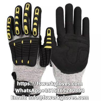 Anti Cut UHMWPE(HPPE) Liner Nitrile Sandy Coated TPR Gloves Impact Gloves Vibration Gloves