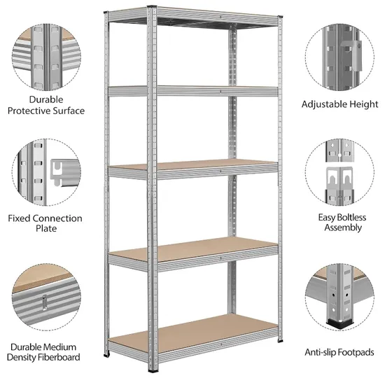 1). Different sizes and colors are available, we can customize according to your requirements and preferences to meet all your needs; 2). Cold rolled steel and our own powder coated protect racks from rusting, to ensure the firmness of the shelf, the adhesion, and durability of the coating, you can greatly extend the life of the shelf; 3). Bolt-free construction, easy assembly, without having to follow complex instructions or use tools or bolts; 4). Adjustable shelves, easily adjust the height of your shelves to perfectly adapt to objects of various sizes, provides convenience for you to place goods of different sizes; 5). Maximizes space use in any warehouse configuration. It can save you more space for other purposes.