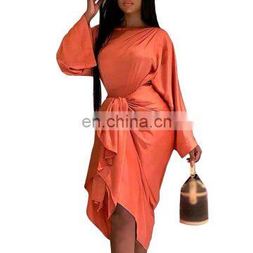 TWOTWINSTYLE Fashion Dress For Women O Neck Long Sleeve High Waist Asymmetrical Solid