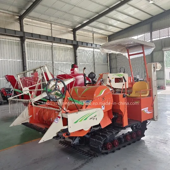 Crawler harvester operation is flexible and convenient, can turn 360 degrees in place, encounter more complex plots, can also harvest very clean. Can harvest rice wheat and other crops, threshing clean, adaptability is relatively strong, whether it is dry soil, or soft soil. Paddy fields and mud fields can be harvested.
