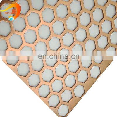 You May LikeBuilding Wall Cladding Facade Perforated Sheet Metal MeshProduct DescriptionPerforated metal sheets, also known as perforated metal, perforated plate, or perforated screen, is sheet metal that has beenmanually or mechanically stamped or punched to create a pattern of holes, slots, or decorative shapes.itemvalueTypeCurtain WallsWarranty3 yearsAfter-sale ServiceOnline technical supportProject Solution CapabilityOthersApplicationDecorative,protection, fiter and so onDesign StyleModernPlace of OriginChina HebeiBrand NameDongjieModel Numberdj2020121501 for perforated metal meshProduct nameOutdoor wall covering aluminum panels for walls claddingColorgold and customed other colorHole shapeHexagonal,and custom other hole shapeSurface treatmentPowder Coated, PVDF, Galvanized and so onCertificationISO9001FeatureCorrosion Resistance, durable, long service lifeThickness0.2mm,0.3mm,0.5 mm and support customLength1 m, 2 m, 3 m, 10 m, 15 m and support customWidth0.5 m, 1 m, 1.2 m, 1.25 m and support customSampleAvaliableWe offer a variety of specifications (Support custom)NoHole shapeHole sizeHole distanceThicknessMesh widthMesh length1Round hole0.5-25 mm1.25-30 mm0.6-6 mmCustomedCustomed2Hexagonal20 mm5 mm3 mmCustomedCustomed3Hexagonal50 mm20mm2mmCustomedCustomed4Hexagonal50mm10mm1mmCustomedCustomed5The oval6.6*15.5 mm6 mm2 mmCustomedCustomed6Triangle80*12 mm5 mm1 mmCustomedCustomed...............CustomedCustomed...CustomedCustomedCustomedCustomedCustomedCustomedAdvantages.--Multilayered structure welding, which can make the filter hole stable, the anti-deformation ability is very strong.---Excellent anti-corrosion properties of stainless steel , anti-acid, alkali and salt corrosion, can adapt to the specialrequirements of the oil well, and the cracks will not become larger due to corrosion.Advantages.Decorative perforated metal is a sheet of material that contains a series of punched decorative holes. The shape of the hole isdetermined by the shape of the die. For perforated sheet metal with a decorative hole pattern, the die is shaped in various forms.Our decorative perforated metal is available in a wide array of hole shapes, gauges and materials in straight and staggeredpatterns. We stock decorative perforated sheet metal in various sizes.Applications The perforated metal sheet is widely used for the ceiling, curtain wall, staircase, decorative partition and protection net of the building because of its various materials, various hole types, various surface treatment methods and strong customization.Company Profile Anping DongJie Wire Mesh Filter Products Co., Ltd. is a manufacturer of perforated metal mesh products with well-equipped testing facilities and strong technical force. With a wide range, good quality, reasonable prices and stylish designs, our products are extensively used in construction company,decoration company,road administration and so on. Our products are widely recognized and trusted by users and can meet continuously changing economic and social needs. We welcome new and old customers from all walks of life to contact us for future business relationships and mutual success!As always stuck into “Quality Proves Strength, Details Reach to Success”, Dongjie has achieved highly acclaim in the old and new customers.Production ProcessAnping Dongjie Wire Mesh Products Factory is founded in 1996 with over 5000sqm areas. We have more than 100 professional workers and 4 professional workshops: expanded metal mesh workshop, perforated workshop, stamping wire mesh products workshop ,molds made and deep-processing workshop.Packing & Delivery* Packing in pieces * Bubble film * Wooden case* Packaging special belt + Metal Angle guard * Post marks Product QuantityDelivery TimeShipping WayShipping Time1-50 pieces3-5 days after received your paymentDoor to door by express5-10 days50-100 pieces5-10 days after received your paymentDoor to door by express5-10 days100-500 pieces10-15 days after received your paymentShipping by airShipping by sea20-30 daysCertificationsFAQ1. Who are we?We are based in Hebei, China, start from 2012,sell to . There are total about 11-50 people in our office.2. How can we guarantee quality?Always a pre-production sample before mass production;Always final Inspection before shipment;3.What can you buy from us?Expanded Metal Mesh,Perforated Metal Mesh,Decorative Wire Mesh,Stamping Parts4. Why should you buy from us not from other suppliers?Dongjie Wire Mesh Products Co., Ltd. is a private science and technology enterprise in Hebei Province,mainly engaged in the production and sales of wire mesh ,decorative mesh ,air filtration and separation products.5. What services can we provide?Accepted Delivery Terms: FOB,CFR,CIF;Accepted Payment Currency:USD,CNY;Accepted Payment Type: T/T,L/C,PayPal,Western Union,Escrow;Language Spoken:English,Chinese