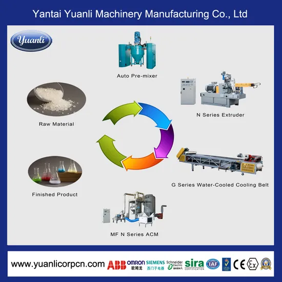 | Capacity(kg/h) | Pre-mixer | Extruder | Cooling Belt | Grinding System |