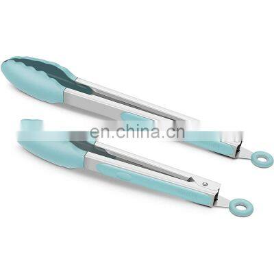 9-Inch & 12-Inch Cooking Tongs, Premium Silicone Set of 2 Non-Stick Stainless Steel BBQ Grilling Locking Food Tong