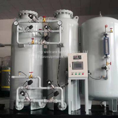 Product Description WellCare oxygen generators use pressure swing adsorption (PSA) technology. The generator consists of two separate pressure vessels filled with zeolite molecular sieve (ZMS) material that separates the oxygen from the incoming air. Our oxygen generator plants are based on a reliable, flexible and trouble-free vacuum pressure swing adsorption (VPSA) process. They are the perfect fit for on-stream applications that require low-cost gaseous oxygen with purity levels of 90 to 95 percent per volume. The capacity ranges from around 300 Nm³/h up to 10,000 Nm³/h, either as pre-engineered, fully standardised and containerised VPSA plants or customizes VPSA plants. Our oxygen generator VPSA plants deliver a host of benefits including: Oxygen on demand Energy efficiency Easy partial load operation High availability Fully automated operation
