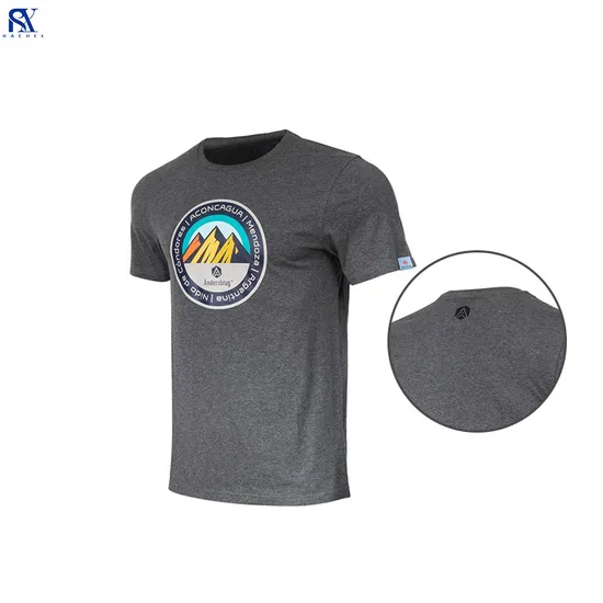 | Description | Men style Round neck collar Main fabric: 100% Cotton in Melange grey weight: 180gsm With Printing logo on the front Back inside collar with printed label Left Sleeve with woven tag label |