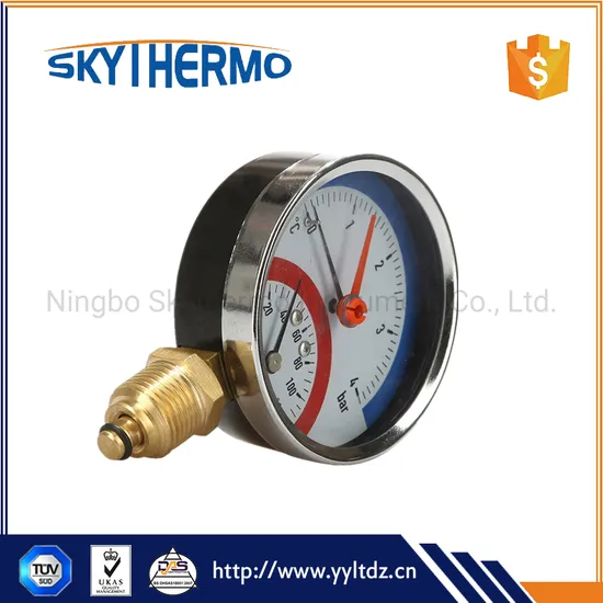 D80mm bottom connection thermomanometer Black Steel Thermomanometer Measuring Pressure And Temperature Product Description