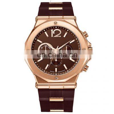 SpecificationCustomized Own Brand Japan Movement Quartz Watch Fashion Brown Jam Tangan Man Sports WatchCaseMaterialStainless SteelSize43 mmWaterproof10 ATMGlassMineralStrapMaterialSiliconeWidth26-22 mmBuckleSquare BuckleDialMaterialCopperMovementModelMiyota JP25 Multifunctional QuartzDetails ImagesTransaction Flow1stDiscussion & Confirmation of Design2ndConfirmation of Down Payment3rdSample / Mass Production4thConfirmation of Balance Payment5thDeliveryPayment Term & Lead TimePayment TermSample100% pay before productionBulk30% pay before production, 70% pay before shipmentPayment MethodAlibaba Trade AssuranceLead TimeSampleWith Your Own LogoIf Cases in Stock30 DaysWithout LogoIf Cases in Stock3 DaysWith Your Own LogoCustomized Cases50 - 60 DaysBulkWith Your Own LogoIf Cases in Stock40 - 50 DaysWith Your Own LogoIf Cases Out of Stock50 - 60 DaysServiceOEM / ODM AvailablePacking & DeliveryFree Paper BoxA watch packed by a plastic bag, 10pcs watches packed by a paper box. Free Foam BoxA watch packed by a plastic bag, 10pcs watches packed by a foam box.PU Leather Gift BoxWe understand customers request customized gift boxes for the customized watches, as a manufacturer, we are able to offer one station service. MOQ: 500PCSIn addtion, if you have your own box supplier in China, the boxes can be sent to us for packing for free.Company ProfileHK Watch FairAs an expereienced watch manufacturer in China, Dualtime attends HK Watch Fair every time, to exhibit new designs and hot sellers, which have caught visitors eyes and help it develop customers from all over the world. Dualtime Case WorkshopDualtime focuses on high end watch, attaches great importance of quality, that's why it has self own case manufacturer, it can control the lead time and quality easily.Dualtime Dust Free Assembly WorkshopDualtime gathers some sophisticated assembly staffs, which specializes in assembling watch with complicated movements, they need to keep all watches working normally.Dualtime Quality Control WorkshopDualtime gives priority to the quality, it is vital element for the transaction. Therefore, Dualtime has different quality control teams for the incoming material, semi-finished watch and finished watch. Quality is life.Dualtime Quality Control Machines(Some of them have been uploaded as following)Waterproof Test MachineThis machine is for 1-30ATM Waterproof, to find out which ones cannot reach waterproof request level.Strap Durability Test MachineThis machine is for durability of strap, to see the straps can be folded for how many times and durability level.Shock Test MachineThis machine is for shock test, to assume that whether the hands will be loosed during transportation.Dualtime Clients Meeting Dualtime enjoys high reputation in watch field, a plenty of customers from different countries have come to visit Dualtime and their watches with joy. It is easier for us to understand each other and discuss business.If you have any interests, welcome to visit us!Dualtime Responsibility & PhilosophyDualtime has mature working systems, with sophiticated engineers, excellent designers and professional international salesman. We follow up the trend of watch fashion closely, create new and stylish designs every month. In addition, if customers have any ideas for their own watch, we can get some inspiration from their ideas and design what they need. Absolutely, design is important, but the quality is the most important, we have never made any compromising on quality, that's why we are able to win and keep long term cooperation with customers from America, Canada, Swiss, Japan, Netherlands, United Kingdom, Spain, Belgium, France, Singapore, Russia and so on.Dualtime always puts customers requirements at priority.