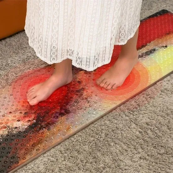 The massage surface of the product is made of glass environmentally friendly material, no odor, no radiation; the integrated model is molded at high temperature, easy to scrub, and is not easy to breed bacteria; the massage particles have a smooth and crystal texture and a suitable size, which can fully massage the acupoints on the soles of the feet. It is heated by far infrared and keeps warm. The feet can relax the meridians and activate the collaterals, play a health care effect.