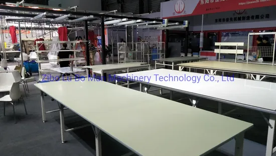 | Garment fabric cutting table | 1.8m*1.2m*0.8m (W*L*H) | 25mm high density board | 30*50 square tube welding | 50mm | T- bar edge; Stainless steel edge | The table size can be customized according to your requirements |