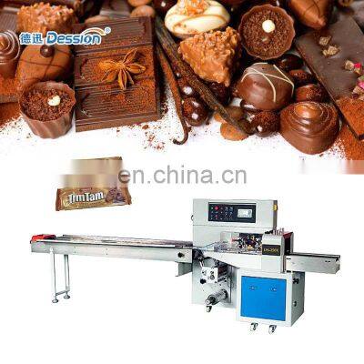 Hight speed automatic chocolate bar packing machineMachine IntroductionPackaging ApplicationAutomatic flow packing machine is a widely used packing machine. Suitable for all kinds of product packaging. Including medicalsupplies, vegetables and meat, baked bread, snacks and candy, daily necessities, hardware accessories, etc.Packing EffectThe effect after packaging is back-seal bag. According to demand, other devices can be customized or upgraded to meet other models. For example, pillow bag with hole, bag with label, gusset bag, etc.Machine Structure and ParametersMachine Characteristics1. Double frequency conversion control, the bag length canbe set and cut, no need to adjust the air, one step in place, saving time and film.2. Man-machine interface, parameter setting is convenient and quick.3. Fault self-recognize function, fault display at a glance.4. High-sensitivity photoelectric eye color tracking, digital input sealing position, make sealing position more accurate.5. Temperature independent PID control, better suitable for various packaging materials.6. Positioning stop function, no sticky kuife, no waste film.7. The transmission system is simple, the work is more reliable, and maintenance is more convenient.8. All control is implemented by software, which is convenient for function adjustment and technical upgrade, and never lags behind.ModelDS-250XDS-350XDS-450XDS-600XDS-700XDS-800XFilm Width(mm)Max.250Max.350Max.450Max.600Max.700Max.800Bag Length(mm)45~33065~330120~450130~450120~600120~600Bag width(mm)30~11050~16060~21060~28050~33050~380Products Height(mm)Max.70Max.80Max.110Max.150Max.150Packing Speed(bag/min)40~23030~15030~15020~12030~150Machine Power220V / 380V, 50/60HZ,2.4KWMachine Size(L*W*H, mm)3920*670*13204020*720*14503900*900*14683990*1000*14684400*1100*14604400*1200*1460Machine Weight800KG900KG900KG1050KG1050KG1050KGDetails ImagesMachine WorkflowThis machine is easy to operate. Just set the parameters on the screen, and then you can start the machine. Put the product on the conveyor belt, the machine will automatically pull the film, the bag is formed, sealed, and finally the bag is cut.Multilingual touch screenThe machine supports various language customization, easy to operate.High sensitivity eye sensorThe eye sensor automatically senses the color code to ensure accurate and beautiful packaging effects.Replaceable bag formerWhen you want to change the bag width, you only need to change a different size bag fromer.Electronic control componentUse Panasonic PLC and frequency converter to ensure the stable operation of the machine.Related ProductsWhy Choose UsVR1. Professional and Strong TeamDession has a professional team that can provide customers with various packaging solutions. After fully understanding the customer's needs, we provide the most suitable packaging solution to the customer. Then start the production of the machine. We have a strong production and processing capacity, from the customized processing of accessories to the assembly and debugging ofthe machine. Finally, it is packaged and shipped, and it only takes a week to complete.2. Excellent transportation serviceAccording to the needs of customers, we can provide sea transportation, air transportation, and land transportation services, so that you can get the machine as soon as possible. Provide door-to-door transportation services.3. Timely and effective after-sales serviceChoosing us is not only buying a machine, but also our professional and timely service. 1. When the machine is delivered, we will attach a video of the installation and operation of the machine, so that you can use the machine quickly. 2. All electrical appliances of our machines have a one-year warranty, and we will replace them if they fail. 3. When your machine fails, we will have professional engineers to provide professional online after-sales service to help you solve the problem. 4. If the problem cannot be solved online, we will arrange an engineer to repair it on site within a week.Buyer FeedbackWe have 8 years of experience in foreign trade and export, and now our customers have spread to 90 countries all over the world. With our high-quality machines and professional services, we have won unanimous praise from our customers.Company Profile Dession a leading manufacturer of Packaging machine and supporting facilities, which has successfully developed more than 80 kinds of packaging machines. Dession Packaging Machine has widely applied for different fields throughout the world, such as food/ industrial food, medicines, hotel supplies, disposable goods, rubber goods, daily appliances, hardware fittings, sporting goods, toys etc. Dession has more than 8000 square meters of production plants, 5 production workshops and a parts processing workshop, including small vertical machine production workshops, vertical machine production workshops, pillow machine production workshops, cartoning machine production workshop and filling machine production workshop.FAQQ1:Do you have manual or operation video for us to know more about the machine? Yes, not only manual or operation video, 3D drawing also available to make as per your design,also the video we can make of testing the material from our packaging machine if your packing goods easier for us to find from our local market. Q2:How can I trust you for the first time business ?Please note our above business license and certificate. And if you don't trust us, then we can use Alibaba trade assurance service, guarantee your money, and guarantee your machine's on-time delivery and machine quality.Q3:Is engineer available to serve oversea?Yes, but the travel fee is paid by you. So actually to save your cost, we will send you a video of full details machine installation and assist you till the end.Q4:How can we make sure about the machine quality after we put the order?Before delivery, we will send you the pictures and videos for you to check the quality, and also you can arrange for qua