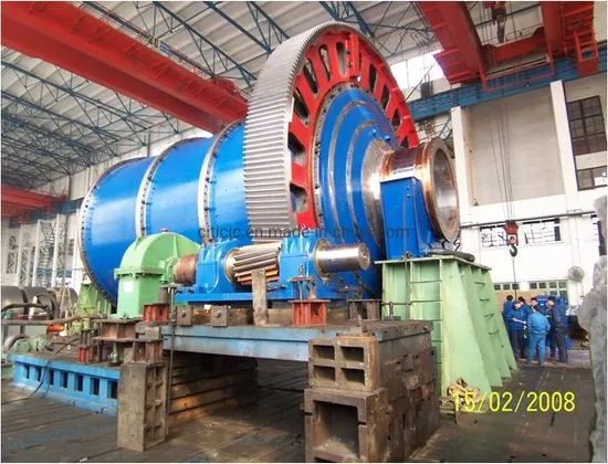 The ball mill is a horizontal rotating equipment transmitted by the outer gear. The materials are transferred to the grinding chamber through the quill shaft uniformly. There are ladder liners and ripple liners and different specifications of steel balls in the chamber. The centrifugal force caused by rotation of barrel brings the steel balls to a certain height, then impacting and grinding the materials. The grinding materials are discharged through the discharging board, thus the grinding process is finished.