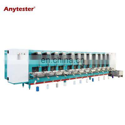 Product DescriptionAT240 Series Single Yarn Sizing Machine is suitable for yarn sizing of cotton, flax, silk, wool, synthetic filament, etc.As the textile develops in the direction of small quantity, diverse kind and prompt delivery, so our company has developed AT240 Series Yarn Sizing Machine on the increasing requirements on product samples. It is widely used in the sampling in the industries including wool spinning, cotton spinning, colored woven and natural silk etc.SpecificationModelAT240Number of spindles2, 4, 8, 12 or customizedSizing speed20~300m/mincontrolled by invertor and adjustable according to yarn kindHeating methodSteam heating or electric heating (optional)Applicable yarn density5~500tex, cotton, wool silk or chemical fiberMotor power of rotation frame0.18KW per spindleMotor power of grooved drum0.75KW per spindleHeating power of oast1.8KW per spindleMotor power of heat circulationApprox.1.lKWPower supplyAC380V 50Hz, three-phaseDimensions3100×850×1750mm(L×W×H) for 4-spindle machineWeight1000kg for 4-spindle machineDetails & FeaturesOverview of AT240★Independent control of each spindle, digital display of tension index and digital display of speed of rotating frame and counting of length. And rotating frame storing 160 turns of yarn on it to increase the drying timeAutomatic Tension Control★single spindle control, the frequency controller or steeples controller is used for cabbage rotational motor in drying room. The yarn guide cylinder is traced by the servo.Automatic Speed Control★Grooved drum controlled by servo motor and its rotation speed is automatically adjusted according to the speed of rotating frame to control the yarn tension ★Independent control of each spindle with digital display of speed and length;★Motor of rotating frame controlled by interver or stepless-adjustable speed controller and grooved drum controlled by servo motor tracing the speed of rotating frame for automatic tension control;Our CompanyHistorySince 1982 with more than 20 years’ experienceWarrantyTwo Year Warranty for whole productTrainingVideo and user manual for trainingOnsite serviceInstallation and training service is availableTesting serviceFree sample testing before order is availableLead time15 working days lead time for most productPacking & DeliveryPackagingDimensions3100×850×1750mm(L×W×H)WeightApprox.1000kgPackaging Details1. The equipment is covered with film is protect it from water vapour during the trip. 2. The box is filled with foam to protect the equipment from impact. 3. Exported wooden box made from plywood, don't need fumigated. PaymentPayment TermT/TEXW30% T/T in advance, paid the balance before shipmentFOBCFR(C&F)30% T/T in advance, paid the balance against copy of B/LCIFL/CL/C amount above 50,000 usd, we can accept L/C at sightWest UnionAmount lower than 5000usdWest UnionDelivery Time7~10days after receiving payment for one containerContacting Us
