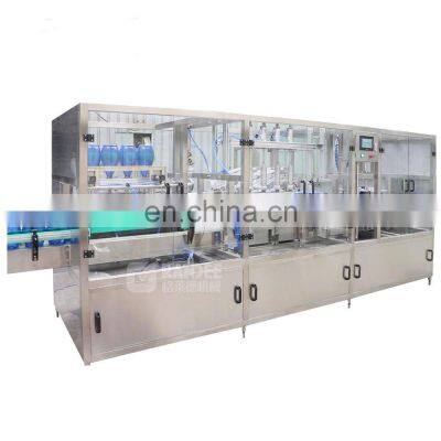 5L bottle linear type water filling machine pure bottled water filling machineProduct Description Application:This linear type automatic washing filling capping machine is suitable for all kinds of 3-10L bottle shapes (including the irregular-shape bottles). According to customer requirements, this machine can fill : such as: white wine, soy sauce,vinegar, spices, vegetable oil,Syrup, water and other liquid food products and pesticides and chemical industry, various types of liquid products.This machine adopts computer (PLC) control, with high efficiency, precision measurement characteristics and is ideal packing machine for food, medicines, chemical products. Machine show:DetailsWashing Part:The grippers take the bottles from the inlet star-wheel while they are still driven by the star-wheel, thus guaranteeing a safe grip. After the gripping, the bottle is turned upside down with 180 degree and cantred above a spraying nozzle which directs a stream of rinse water into the bottle. After the draining period the bottle is turned over to an upright position againFilling Part:Long tube filling type with 2 times filling process to make sure perfect filling level Liquid tank, filling valves, controlling rings, upgrading cylinder. High speed and mass flow filling valve ensures the high filling speed and exact fluid level. Parts contacting liquid are all made of excellent stainless steel or food grade engineering plastic. Capping Part: Rotative capping turret, suitable to the application of screw plastic caps on PET bottles The fixed part consists of the cap hopper, the cap feeder with relevant motor and the cam actuating the capping heads. The heads are raised and lowered by the action of a follower that is riding on a shaped cam.Conveyor System: Conveying path support on the ground by tripod, driving motor adopt frequency control, it connects with washing filling and capping 3 in 1 machine and keeps pace with it. The filled bottles are conveyed by the conveyor system. Driving system is running by a main motor that adopts gear drive mode.Air Conveyor: Air Conveyor is mainly used in the automatic filling production line of PET bottle beverage or water. It is the intermediate transportation of connecting blowing machine, unstacking machine, bottle storage conveying table and filling machine. Main technical parameter:ModelCGF4-4-1CGF8-8-3CGF10-10-4CGF16-16-5Capacity(5L B/H)50080012001620-2000Filling volume(L)3-103-103-103-10Rising heads481016Filling heads481016Capping heads1345Power(KW)2.54.55.55.5Dimension(mm)2800*1100*18003500*1100*18004200*1100*18006000*2600*2500Weight(KG)1000130016002600 Related productRO System: Besides Water filling machine, this RO system is very important in the whole water project, we prefer you supply water analysis report from your local inspection department.This RO system we can make to match up with your water filling machine from capacity from 500L/Hr to 50000L/hr.Blow Molding Machine: 1. Semiautomatic Blowing Machine for 500BPH-2000bph from 3-10L bottle with 2 or 4 cavities.2.Full automatic blowing machine from 2 cavity, 4 cavity, 6 cavity, 8 cavity, 9 cavity,etc from 2500BPH to 12000BPH for 5000ml bottle. Automatic self adhesive labeling machine Instructions: it can independent work or connect to the conveyorBottle type: glass bottle, plastic bottle and so on, circle, square figure or taperAlarm function: There is no colorful belt warning label, lack of label, and broken label warmingBottle diameter: 10-120mm Height: 25-400mmL type PE film shrink packing machine Pang Flow: Feeding→ pushing bottles→ film covering and sealing→ shrinking→ coolingSpeed: 8-12packages/minPower (rated/real): 26kw / 16kwMax. packing size: 420*300*350mm(LxWxH)Max. sealing size: 650mm Company InformationOur ServicesFAQQ1: How to find suitable machine or complete beverage production line?A1: Looking for beverage filling machine in www.grandeemachine.en.china.cn •Enquiry: Contact us by email, phone call, fax, Instant Messenger (Trade manager, Skype, WhatsApp, Wechat) and let us know your requirements • Discussion: Specify the items and what are you exactly looking for. Q2: Are you a trading company or a manufactory?A2: We are the manufacture of water/beverage filling machine and water treatment system over 10 years.We just not only sell drinking water machines and other related equipment , Quality is our culture. We have rich experienced engineers with technicians working team , providing good and after-sales service term , professional salesman terms . Q3: Do you have technical support after we purchased your machines?A3: We will arrange our professional technical to go aboard to your factory, they will help you and teach you how to install and maintenance the machines which you purchased. Or help you to fix machine when it has problems. Q4: If you buy our machines, can you offer us wear-out spare pats?A4: We provide our high quality machine 2 years guarantee , and we will also offer you 2 years wear-out spare parts for free. Once your machines broken or doesn't work within 2 years and you can't solve it, firstly, we will try to help you to find problems from your words description by phone or other communication tolls. Secondly, if the phone solutions still not work, our engineers will go to your factory to solve it. Meanwhile, they will teach you the related experiences for fixing.