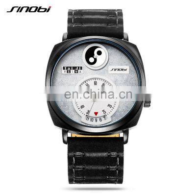 SINOBI Chinese Style Men's Watch Taiji Images Dial Soft Leather Band Double Movements Quartz Movement S9772GFQA:1. What's your best price for this watch?A: We will quote you best price according to your quantity, so when you making an inquiry, please let us know the quantity you want.2. What's your MOQ? Can I mix styles and colors?A: For watch, MOQ is 500pcs/model for OEM & ODM, 300 pc/model of our brand SINOBI. We can mix colors for you, 300pcs/color. Usually we don't accept mix styles. But for the first order, and we see your sincerity to cooperate, we will try to accept 300pcs/style,but the unit price will be higher than the unit price of 500pcs.3. What's the delivery time?A:Delivery time is 25-35 days after confirmed all details and receipt of deposit.4. Can we print our own logo?A: Yes, we can print logo free for you, we can print your logo and design on the band, dial, buckle, back, case and other place, usually the color of the logo is one color.5.What about the warranty?A: We are very confident in our products, and we pack them very well, so usually you will receive your goods in good condition. But to avoid any subsequent trouble regarding quality issue, we suggest that you check the watches once you receive them, and let us know the details if there is any damaged ones, so that we can deal with it accordingly.6.Do you offer Drop shipping (Blind shipping )?Yes , we offer Drop shipping/Blind shipping,we haven enough experience in drop shipping ,every day we have many watches to send out many countries for Drop shipping.7. Do you do custom watch boxes?Yes, we do custom watch boxes. We can follow your requirement to make the boxes ,or you can select our boxes with your logo, we have many different type watch boxes for you selecting.8. What movement do you usually use in your watches?We usually use Japanese movement ,Swiss movement, and Chinese movement, for example Seiko,Citizen,Miyota,Ronda ,Kingstar we use most.9. What kind of materials do you usually use in your watches’ case?We usually use stainless steel and alloy for case, if you have any special requirement, we can according to your requirement for the case.10.What kind of band do you usually use in your watches ? We usually use genuine leather band , stainless steel band,nylon band, mesh band,PU leather band, silicone band ,and so on.11.What is your packaging?For sample packaging: 1.Normal packaging :each watch will be put into a poly bag then packaging well into a small yellow carton2.Gift box packaging: each watch will be put into a gift box then put into a small yellow carton For OEM/ ODM Products packaging:Normal packaging 1. Each piece will be put into a poly bag;2.20 pieces into a white box;3.10 white boxes into a 39*30*33cm carton; Box packaging1. Each watch will be put into a box;2.100 boxes will be put into a carton; Special packaging: As per your request.**Note: Only Normal packaging service is free.