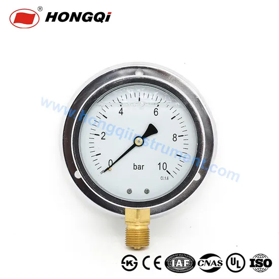 A full stainless steel pressure gauge is a pressure measuring instrument that is made entirely out of stainless steel material. It is used to measure the pressure of liquids and gases in various applications and industries, including oil and gas, chemical manufacturing, and food processing.