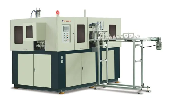 1.2 cavity 2 liter fully automatic pet bottle blowing machine JS-2000G With touch screen, Use Festo ( German brand) , SMC (Japan brand ) & Parker ( U.S.A Brand) pneumatic components. PLC use Mitsubishi (Japan brand)