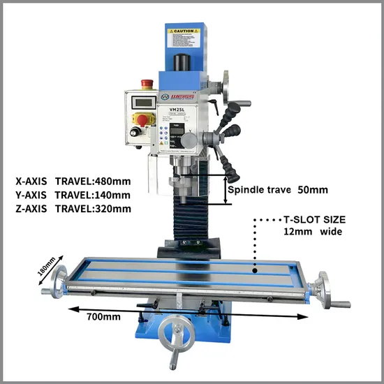 | Spindle taper | MT3 or R8 | | 58pcs clamping kits M12 |
