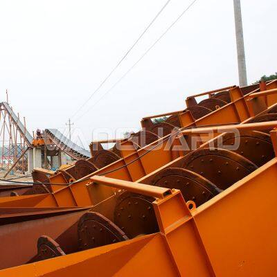 Screw sand washing machine is a machine which uses the buoyancy of water to separate dust and impurities from sand. With the agitation of the screw slice, the impurities will be washing off. Meanwhile, the fine sand and the coarse sand will be mixed uniformly while it is lifted up. Screw sand washing machine is designed according to the characteristics that materials with different particle size and density