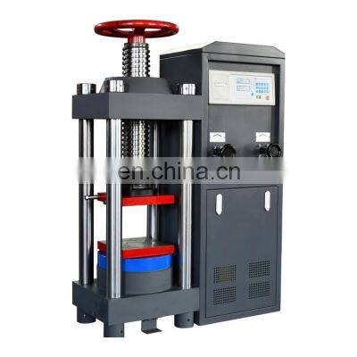 DYE-2000 Digital Compression Testing MachineProduct DetailsProduct Application 1. DYE-2000 electro-hydraulic pressure testing machine is driven by hydraulic power source, and intelligent measurement and control instrument is used to collect and process test data. It is composed of four parts: test host, oil source (hydraulic power source), measurement and control system and test apparatus. The maximum test force is 1000kN, and the accuracy level of the testing machine is better than level 1. 2. DYE-2000 electro-hydraulic pressure testing machine can meet the national standard test requirements for brick, concrete, cement and other materials. Manual loading and digital display of loading force value and loading speed value. 3. The testing machine is the main engine oil source integrated structure;It is suitable for compressive test of cement and concrete. With appropriate fixture and measuring device, it can meet splitting test, bending test and static compressive elastic modulus test of concrete.ModelDYE-2000ANameManual screw digital display compression testing machineMaximum test force (KN)2000Test accuracyLevel 1Space adjustment methodManual screw adjustmentPress Space(mm)320Sensor typeOil pressureUpper platen size (mm)240x240Lower platen size (mm)240x240Motor powder (KW)0.75Mainframe dimensions(mm)900x400x1250Machine weight(kg)600Detailed ImagesProtective net is more safeTest results are automatic processing, storing and printing.Built in radial piston oil pump,stable output and low noiseCompany informationCangzhou Lovely Technology Co., Ltd is specialized in Nondestructive Test Instrument and Material testing machine over 10 years, Without advanced technologies and best customer service, Our product has exported to more than 100 countries and regions,which winfavorable comments from customers worldwide.Cangzhou Lovely Technology Co.,Ltd. insisted on "Integrity-based, guests supremacy". Welcome customers from all over the world to visit us for business negotiation!The Foreign Trade Department of Cangzhou Lovely Group Co.,Ltd. was established.According to customers' requirements, there has the machine---CZY5 Rebar Weighing and Length Measuring Instrument Independent research and development and production of GW50 Automatic Rebar Bending Testing Machine.L800 Integrated Floor Thickness Gauge RBL+ Rebar Detector goes public.New product-- U900 Series Non-Metallic Ultrasonic Detector.HYE-2000 Series Microcomputer Servo Compression Testing Machine: Pad adjustment, Manual screw adjustment, Electric screw adjustment. WAW-B Micro Electromechanical Liquid Servo Universal Testing Machine.EV2 Static Deformation ModulusTester; EVD Dynamic Deformation Modulus Tester. ---Patented ProductThe factory was established, begin to produce more than 20 types instrument.Our ServicesPre-sale service* OEM customized service* Equipment installation and calibration* Free technical training for visiting factoriesAfter-sales service* 24-hour Online consulting support.* Training how to instal use the machine. * the professional after-sale service team will provide perfect technical supportPacking & DeliveryWe promise the delivey in time. And we support customize products for customers. Such as the voltage and package etc. All wooden box are suitable for exporting. FAQQ1:Are you a factory or trading company? A:We are a factory specializing in manufacturinf all kinds of tester. Q2:Where is the loading port? A:Qingdao port or tianjin port. Q3:What’s the MOQ of the product? A:Different item has different MOQ.normally one stand is preferred. Q4:What certificates do you have? A:We have ISO 9001. Q5:Do you have an OEM service? A:Yes.We can provide OEM and ODM services as your requirements. Q6:How long is the production cycle after ordering? A:General it is about 7-20 days. Q7:What is the payment method? A:T/T payment is preferred and other payment terms is accepted.Q8: Could you support to customize?A: Yes, we could customize the package and Voltage as request.
