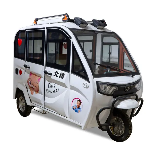 This electric tricycle has five doors. There is also a door at the back of the vehicle body, which is convenient for passengers to take things. This tricycle uses a large motor and is very powerful. The main color of the tricycle is white, and the appearance is stylish and beautiful.