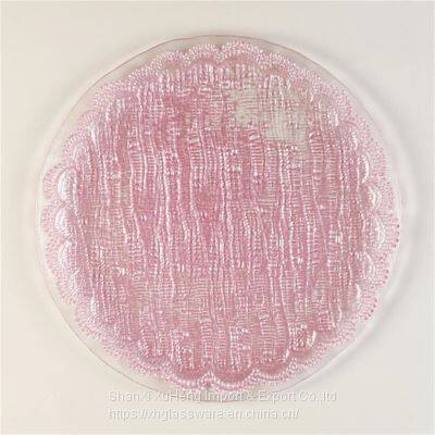 Wholesale Luxury Pink Colored Glass Charger Plate For Wedding Decoration Tableware