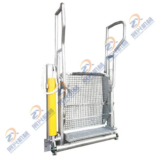 Inspect the tanker for safety and maintenance Load the tanker by loading arm (what is loading arm?) Check the load and take samples Wash or decontaminate compartment Folding Stairs Features: Fully balanced self-leveling steps to automatically adjust to varying tanker heights Full galvanized treatment, anti-corrosion, rust-proof and durable Safety handrails and knee guards fitted as standard Hinged safety step to protect against accidentally trapping toes Pull-rope to assist returning stairs to 'parked' position Vertical locking device (optionally offset) for 'parked' position with foot-pedal release Extended outboard step to provide additional area and stability, for stepping onto the tanker top Rubber bumper to prevent sparking and reduce risk of tanker damage Typical Models of Zhanxing Folding Stairs: