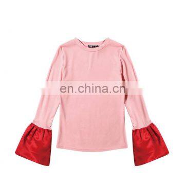 TWOTWINSTYLE Basic T Shirt For Women Patchwork Flare Long Sleeve O Neck Elastic Tops Autumn Slim