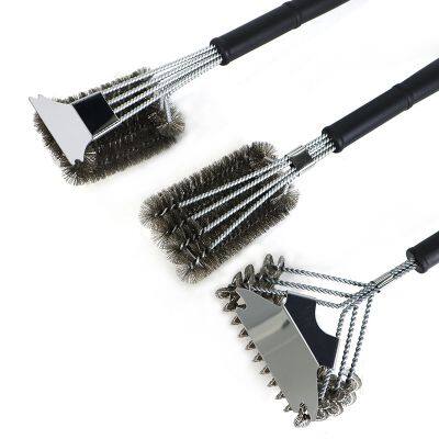 Sarchi's multifunctional long-handled grill brush is the ultimate tool for keeping your grill clean and looking brand new. With its long handle, you can comfortably clean your grill without getting too close to the heat. Made of high-quality material, this brush is durable, rustproof, corrosion-resistant, and high-temperature resistant. Its lightweight yet durable design makes it perfect for travel or camping trips. Featuring a wide four-head brush head and scraper, our grill brush cleans large surfaces faster and more efficiently. It easily reaches hard-to-clean edges and corners, ensuring a thorough cleaning every time. This product effectively removes stubborn stains, saving a lot of time and effort. This versatile brush is recommended for all types of grills, including cast iron, stainless steel, ceramic, charcoal, and smoked grills, etc. Welcome to contact us.