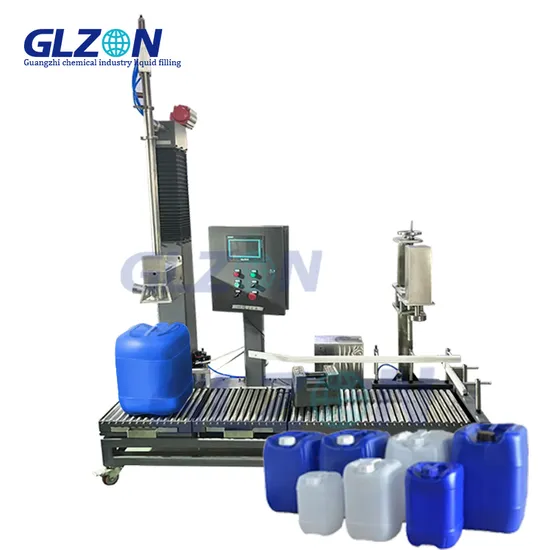 2. It is suitable for filling small-mouth barrels within 60kg, and can be filled with both double heads and single heads. The system adopts programmable PLC control, full English guidance, and easy operation; manual barrel loading, automatic filling. Equipped with automatic capping machine.