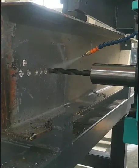 This machine is suitable to the drilling of U-shaped steel beams, channel steel, rectangular pipes, steel plates, steel rails, and round pipes in the production field of building structural steel structures.