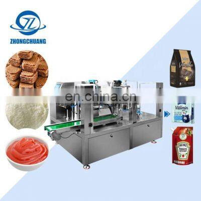 Product Description Model No.ZC-D200Product Namemini doypack baby food spout pouch spoon packing machine granuleFunction Bag-feeding, Filling, Wrapping, Sealing Voltage380V 50/60hzPacking Speed 25-60 bags /minsPacking Bag SizeL: 100-350mmW : 60-200mmApplicable IndustryFood, Drink,Commodity, Medical, Chemical etcSuitable Bag TypeStand-up pouch, Zipper Bag, Film, M pouch etcDimension (L*W*H)5258*3610*3655mmMachine Surface material #304-Stainless steel Gross Weight 1300KGAir Compressed air consemed≤0.6m³ / minAccuracy ±1g (≤100g) / ± 1%( >100g) according to materialWarranty 1 year Customer Evaluation Company Information