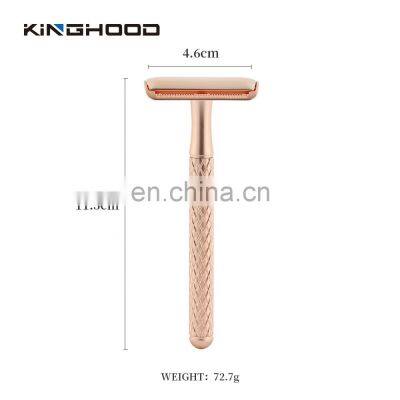 Smple charge is 30usd include shipping cost include laser logo on the razor.KINGHOOD FactoryVRProduct DescriptionDescription:Classical Eco Metal Biodegradable Double Edge Reusable Safety Razor Shaving RazorSize11.3cmx4.6cmMaterial:Razor head: Zinc alloyRazor handle: brass handleColor available:Rose gold, Gold, Black, Silver, customizedPacking available:white box, gift boxPayment30% deposit,70% againest faxed document. T/T,Paypal....ShipmentDHL,FedEx,UPS....By air and sea are availableWhy Choose UsFAQQ1:Are you a factory or trading company? A:Absolutely we are a factory with more than 12 years production experience. Q2:Can you customized my own brand or designs? A:We're the direct manufacture and it's available to customize your preferable design and brand & Logo.Just please provide your full requirement and documents to our sales, then they will give you the professional suggestions. Q3: Can you do OME?A:Yes,we can do OME products. It's no problem.Q4:May I ask for a free sample? A:We are glad to send you a free sample if we have the stock, but it is your turns to pay the courier fee. Q5:What is the minimum order quantity of your product? A:The MOQ of mirror is 3000pcs,For the razor 10pcs.