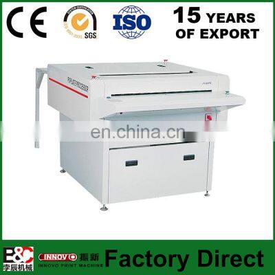 Advanced electric control, finish developing.washing(washing again)gumming,drying in one time, full function; unique dip-tank style plate washing structure. Completely immerging developing; adjustable developing speed, nice CTP developing fur brush, circular chemical, automatic manually two periods chemical supply.