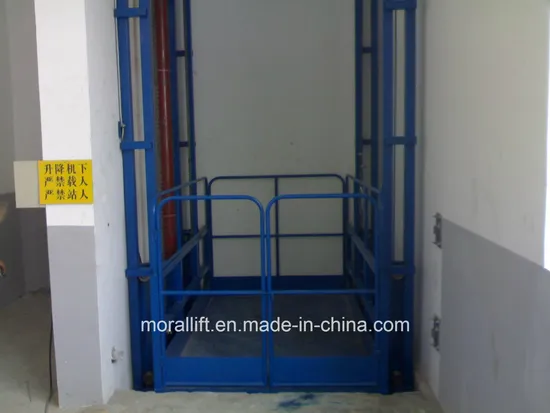 Vertical lift--Lead rail hydraulic lifting platform is used for transfer cargo between different floors. Self-height is about 150-300mm. This platform can install on the ground directly or make one pit. Hydraulic drive, steady working and simple operate.