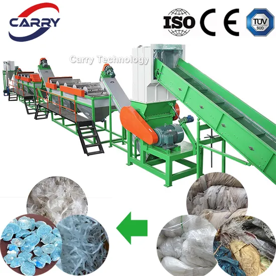 Machine Introduction Plastic pp pe recycling machine washing line is widely used for recycling PE PP bag, woven bag, non-woven bag, HDPE milk bottle, oil barrel, Oil tank, basket, agricultural film etc. Our company can provide a wide range of standard and customized recycling systems to meet the different requirements of a modern recycling environment. The systems are capable of processing a wide range of plastic materials with varying levels of contamination including extremely heavy contamination such as oil based substances and agricultural waste. The output material can be applied for granulation, blow molding and injection. The whole production line is easy to operate, efficient and low energy consumption. There are 300-2000kg/h capacity , we need your detailed requirements to make quotations according. A typical pp pe washing plant is consist of the following components: • Belt conveyor: For waste material infeeding. • Metal Detector - detects metal contamination that may remain in the bottles • Crusher: Wet crushing system.It used for material size reduction and pre-washing by water spraying from the top. • Screw conveyor : For PP PE flakes transportion • High speed Friction washer: High speed friction washing could achieve a good cleaning effects through the blades on the beating and rub.