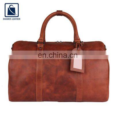 Wide Range of Matching Stitching with Polyester Lining Material Wholesale Men Genuine Leather Duffel Travel Bag