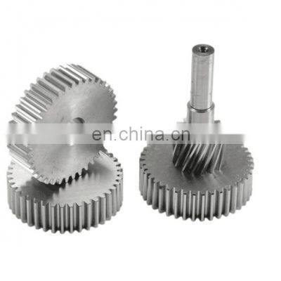 Products DescriptionPump Filler Mixer Agriculture Machinery Reduction Small Module Compression GearDetails ImagesProduct featuresHelical bevel gear has high transmission efficiency, stable transmission ratio, large arc overlap coefficient, high bearing capacity, smooth transmission, reliable operation, compact structure, energy saving, space saving, abrasion resistance, long life, low noise.SPECIFICATIONSThere are 10mm-1600mm diameter, modulus 1-36 modulus, precision grade of spiral bevel gear gb5-GB8.ApplicationSpiral bevel gears are widely used in domestic oilfield petrochemical machinery, various types of machine tools, all kinds of mechanical processing equipment, engineering machinery, metallurgical equipment, steel rolling machinery, mining machinery, coal machinery, textile machinery, ship machinery, shipbuilding, aerospace, forklifts, elevators, deceleration machine, the aircraft manufacturing and many other industries.Material:Steel 4140Number of Teeth:17Presure Angle:20°Surface Treatment:BlackeningProcess:Hobbing,WeldingApplication:GearboxWorkshopRelated ProductsCertificationsPacking & Deliverly