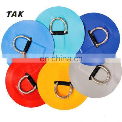 D-rings patches are a convenient way to add mounting points to your inflatable or skin-on-frame craft. These patches are strong, easy to apply, and are commonly used by whitewater rafting outfitters to attach a variety of gear to their boats.
