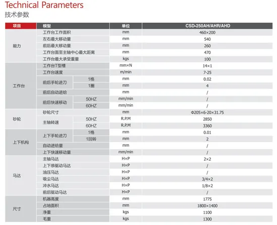 | Grinding Wheel | Grinding Wheel Size | mm | Φ205×6-20×31.75 | |