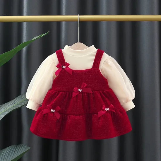 | 1. Product Name | Newest 2 Piece Long Sleeve Warm White Blouse and Red Dress Outfits Kids Christmas Clothing Set |