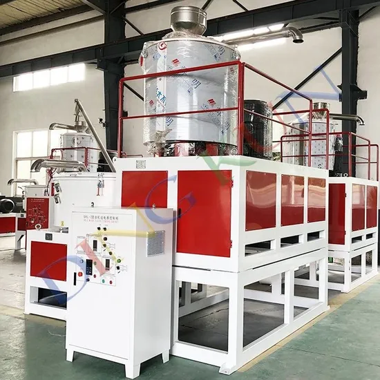 High speed mixers are widely used for mixing, drying, and coloring for all kinds of plastic resin such as PVC , PE, PP. They can also be applied in drying of engineering plastic such as, ABS, PC, etc. This unit is composed of heating and cooling mixers. Hot material from heating mixer is fed into cooling mixer for cooling to eliminate gas and avoid burning.